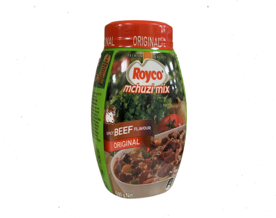 Royco Mix Beef Mchuzi 500g: with natural spices. Containing oorlander, cinnamon, fennel seeds, turmeric, ginger, garlic, cumin and methi seeds.